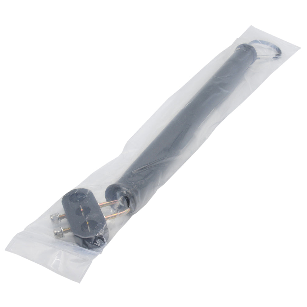 The Barjan RP94201 Single Hose Tender is designed to securely support air and brake hoses. This tender includes a 16-inch long hanger with one spring, a large metal clip, heavy-duty clamp, and springs enclosed in a protective sleeve. With its easy mounting capability, this tender ensures the reliable support of your hoses.