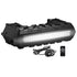 The Boss ATV95LRGB is an amplified Bluetooth 8" marine speaker with RGB lighting and LED light bar, designed for use with ATVs, UTVs, marine vehicles, and for tailgating. It features IPX 5 weatherproof rating, 8 poly injection cone speakers with multi-color LED speaker illumination, 1 high performance soft dome tweeters, and a built-in Class A/B amp for a maximum output of 700 watts. The speaker also includes a 3.5mm aux input, Bluetooth (A2DP) audio streaming, USB charging, in-line remote, and wireless remote. Additionally, it comes with a built-in dual row LED light bar and a storage compartment for added convenience. The plug and play design makes for easy installation, and the speaker is ideal for outdoor recreational activities.