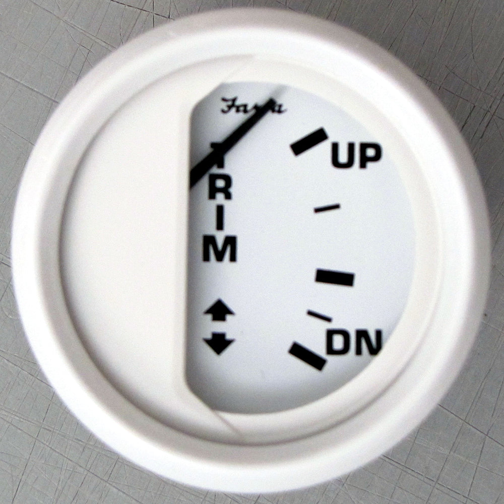 The Faria Beede 13122 Dress White 2" Trim Gauge is a high-quality gauge designed for use with Mercury, Mariner, Mercruiser, Volvo DP, and Yamaha engines manufactured in 2001 and newer. This trim gauge features a perimeter-lighted white dial with bold black graphics, a white aluminum bezel, a contoured black pointer, and a flat glass lens.